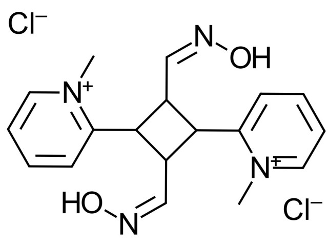 Pyridine-2-carbaldehyde + Ethyl (triphenylphosphanylidene)acetate = Ethyl (E)-3-(2-pyridyl)acrylate + hydrolysis esters = (E)-3-(2-Pyridyl)acrylic acid + SOLARIUM SUNBED (280-365nm) = (1R,2R,3S,4S)-2,4-Bis(2-pyridyl)-1,3-cyclobutanedicarboxylic acid + hydroxylamine HCl + base for OXIME + CH3Cl for quaternary ammonium chloride salts.